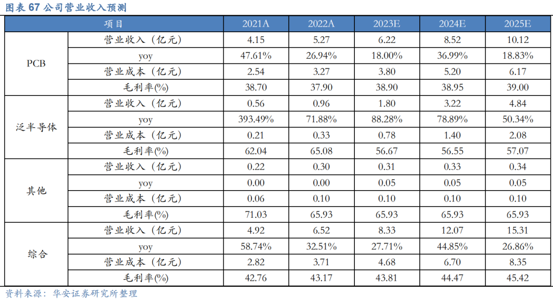 公司PCB直接成像设备海外业务持续发力,且阻焊层等高端品随着定增募投放量,总体我们预测该业务2023-2025年实现收入6.22 /8.52 /10.12亿元,毛利率较为稳定为38.90%/38.95%/39.00%。