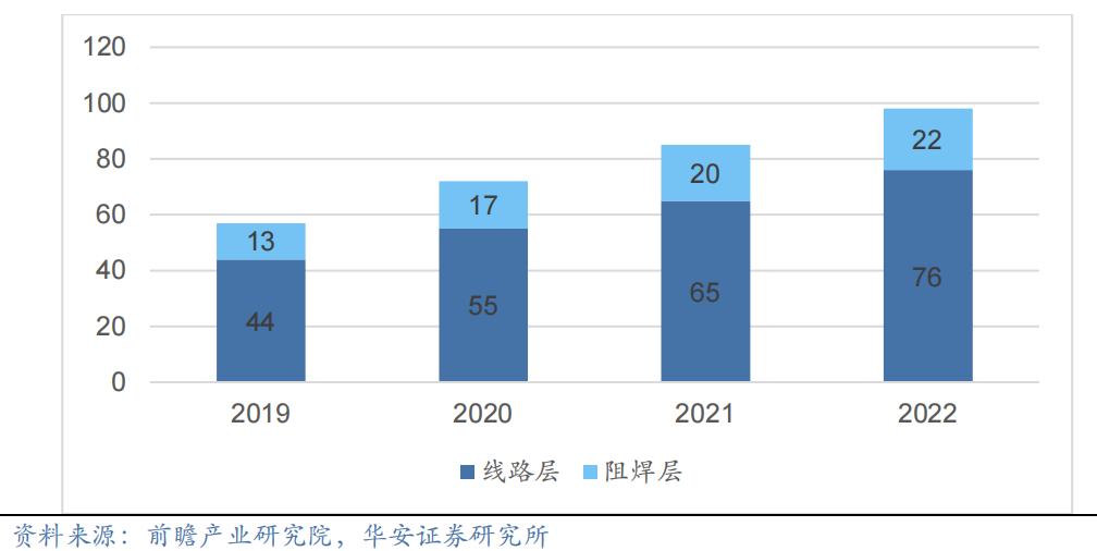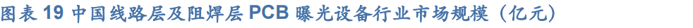 根据前瞻产业研究院数据,2022年中国PCB线路层/阻焊层曝光设备规模分别为76/22亿元,2019-2022年市场规模复合增速均为20%左右。线路层对曝光的线宽精细度、对位精度具有较高要求。线路层是PCB的基础核心层,负责连接和传输电子元件之间的电信号。在大多数PCB设计中,线路层的数量普遍较多,如多层板每个板上都含有多个电子元件需要连接。因此,对线路层曝光设备的需求量相对较大。阻焊层对产能效率和线路板表面质量具有较高要求。阻焊层是一种覆盖在电路板表面的保护层,它可以保护电路铜箔不受外界环境的影响,并起到固定元件和电路连接的作用。PCB阻焊层曝光设备在PCB制造过程中起到了关键的作用,它确保了电路板表面的阻焊层质量和精度,从而提高PCB的稳定性和可靠性。