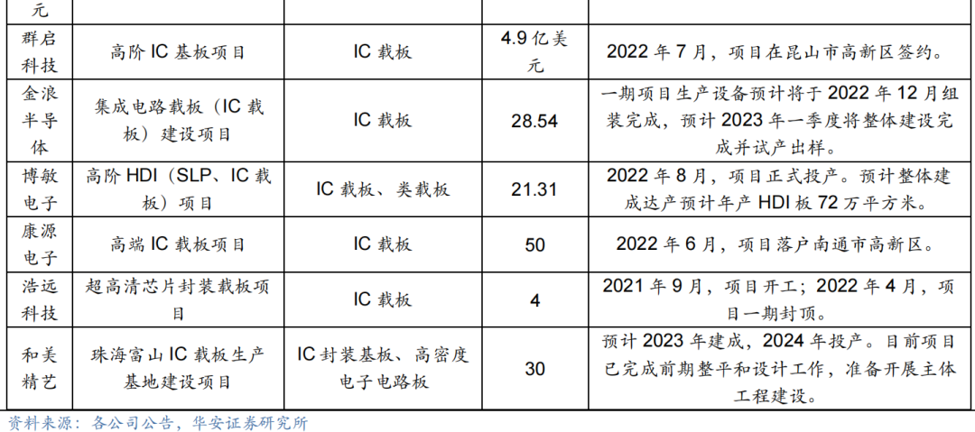 内外资产能释放有望带动高端直写光刻设备需求增加。IC 载板良好的市场发展前景刺激国内外各大业内厂商持续加大投资,目前已有多家业内主要企业发布扩产计划。在外资厂商方面,欣兴电子、揖斐电、新光、京瓷、三星电机、LG、信泰、大德电子等 IC 载板领先企业纷纷宣布扩产,预计将在 2023-2024 年释放产能。在内资厂商方面,近年来,深南电路、珠海越亚、兴森科技等国内头部企业持续扩张 IC 载板产能,预计将在 2023-2025 年释放产能,有望催生可观的高端直写光刻设备需求。