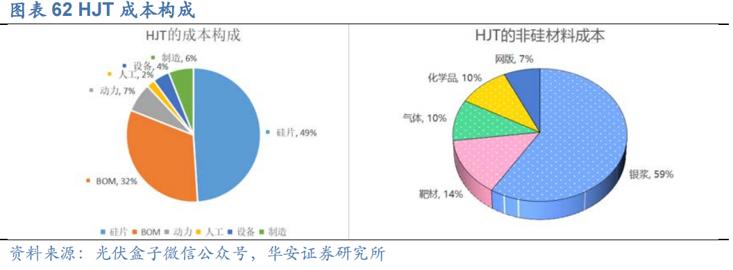 随着P型电池量产效率接近理论极限,N型电池渗透率不断上升,光伏电池用银需求也快速增长。根据CPIA数据,2022 年,p 型电池片主栅数量从 9BB 改为 11BB 及 16BB,正银消耗量降低至约 65mg/片,背银消耗量约 26mg/片;N型 TOPCon 电池双面银浆平均消耗量约 115mg/片;异质结电池双面低温银浆消耗量约 127mg/片。N型电池银浆消耗量远超P型,且HJT由于工艺原因需使用低温银浆,成本进一步提高,银浆成本约占非硅成本的59%。