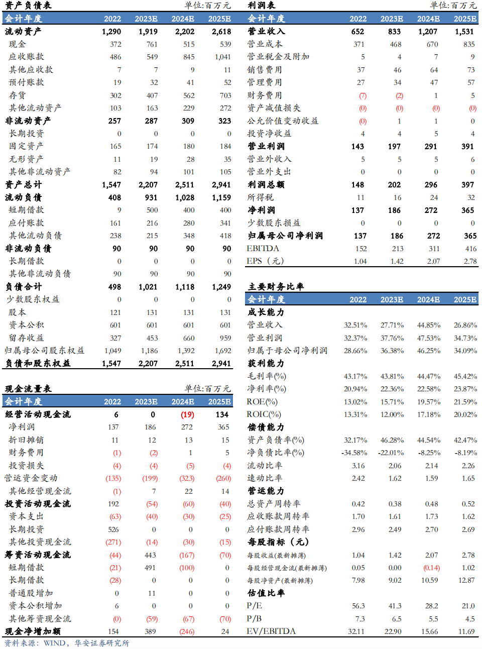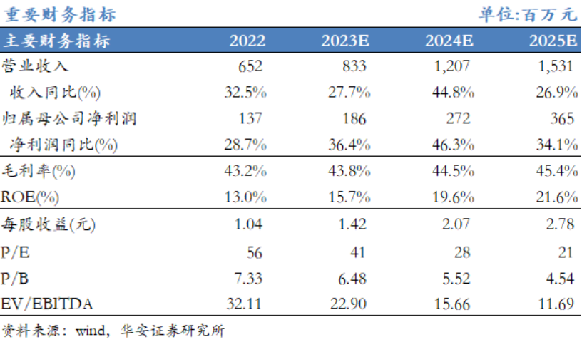 我们预测公司2023-2025年营业收入分别为8.33/12.07 /15.31亿元,归母净利润分别为1.86/2.72/3.65亿元,2022-2025年归母净利润CAGR为39%,以当前总股本1.31亿股计算的摊薄EPS为1.42/2.07/2.78元。