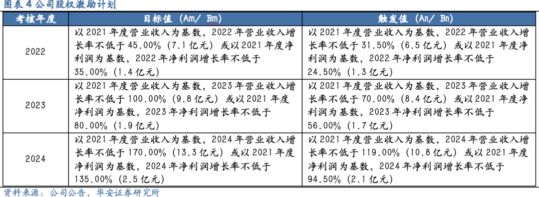 股权激励绑定核心团队。公司2022年发布股权激励计划,向206位核心骨干员工授予87.2万股限制性股票,占公布时总股本的0.72%。以2021年营业收入或净利润为基数,目标值为三个归属期内营业收入相比基数增长率不低于45%/100%/170%或净利润相比基数增长率不低于35%/80%135%。2023年4月19日公司向45名核心骨干员工授予了21.5万股限制性股票,约占当时总股本的0.18%,为公司发展注入长效活力。