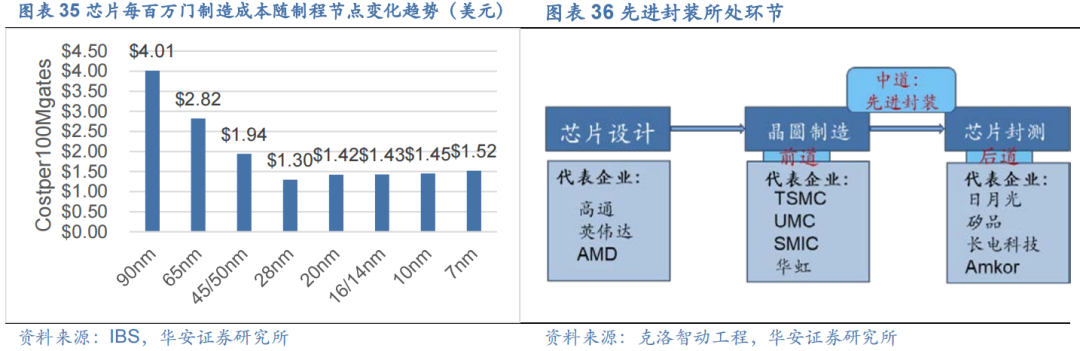 摩尔定律的延伸受到物理极限,先进封装可以相对轻松地实现芯片的高密度集成、体积的微型化和更低的成本。先进封装在提高芯片集成度、缩短芯片距离、加快芯片间电气连接速度以及性能优化的过程中扮演了更重要角色。正成为助力系统性能持续提升的重要保障,并满足“轻、薄、短、小”和系统集成化的需求。
