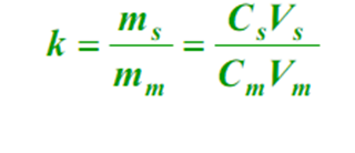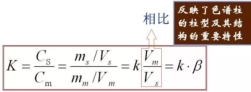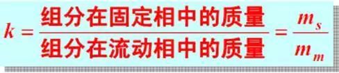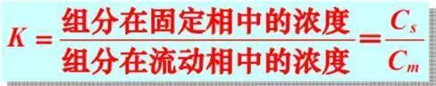 在平衡状态下,组分在固定相(s)与流动相(m)中的浓度之比,称为分配系数。公式如下: