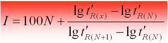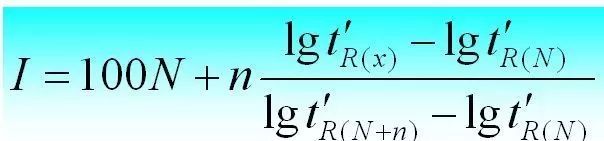 当相邻两个正构烷的碳数差值n=1时,保留指数或简化为: