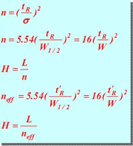 理解:在tR一定时,W或W1/2越小(即峰越窄),理论板数n越大, 理论板高越小,柱的分离效率越高。有效理论塔板neff也同此理。因此,理论塔板数是评价柱效能的指标。
