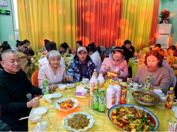 “我已经在这里工作了3年,这里工作离家近,每个月工资3000元左右,和以前在外面打工收入差不多,而且照顾老人孩子方便,工作环境也挺好的,我自己比较满意。今年厂长还特意为我们举办了公司年会聚餐,通过聚餐,增进了我们员工之间的友谊,也为公司提升了凝聚力,还为新一年的工作带来了满满的憧憬。”工会主席依马木艾散·吾舒尔说道。