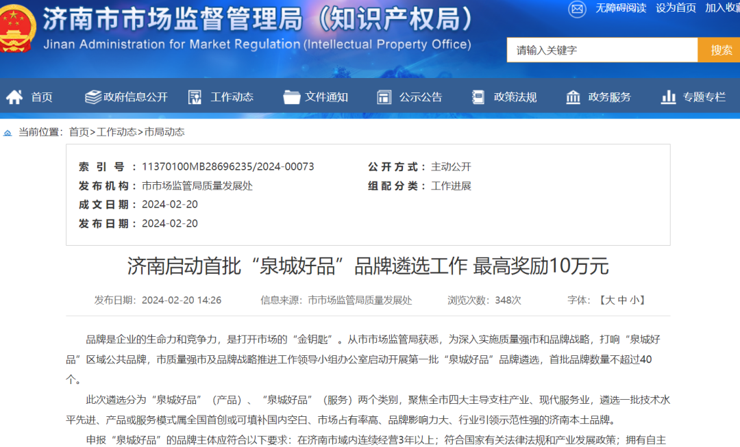 济南启动首批“泉城好品”品牌遴选工作 最高奖励10万元