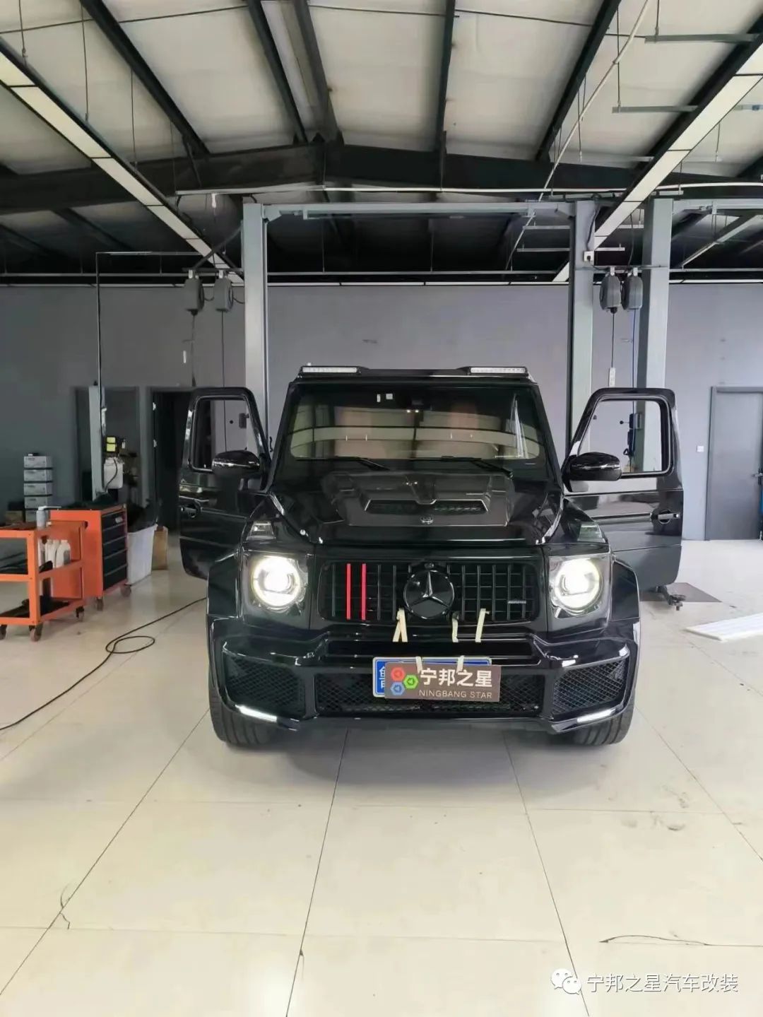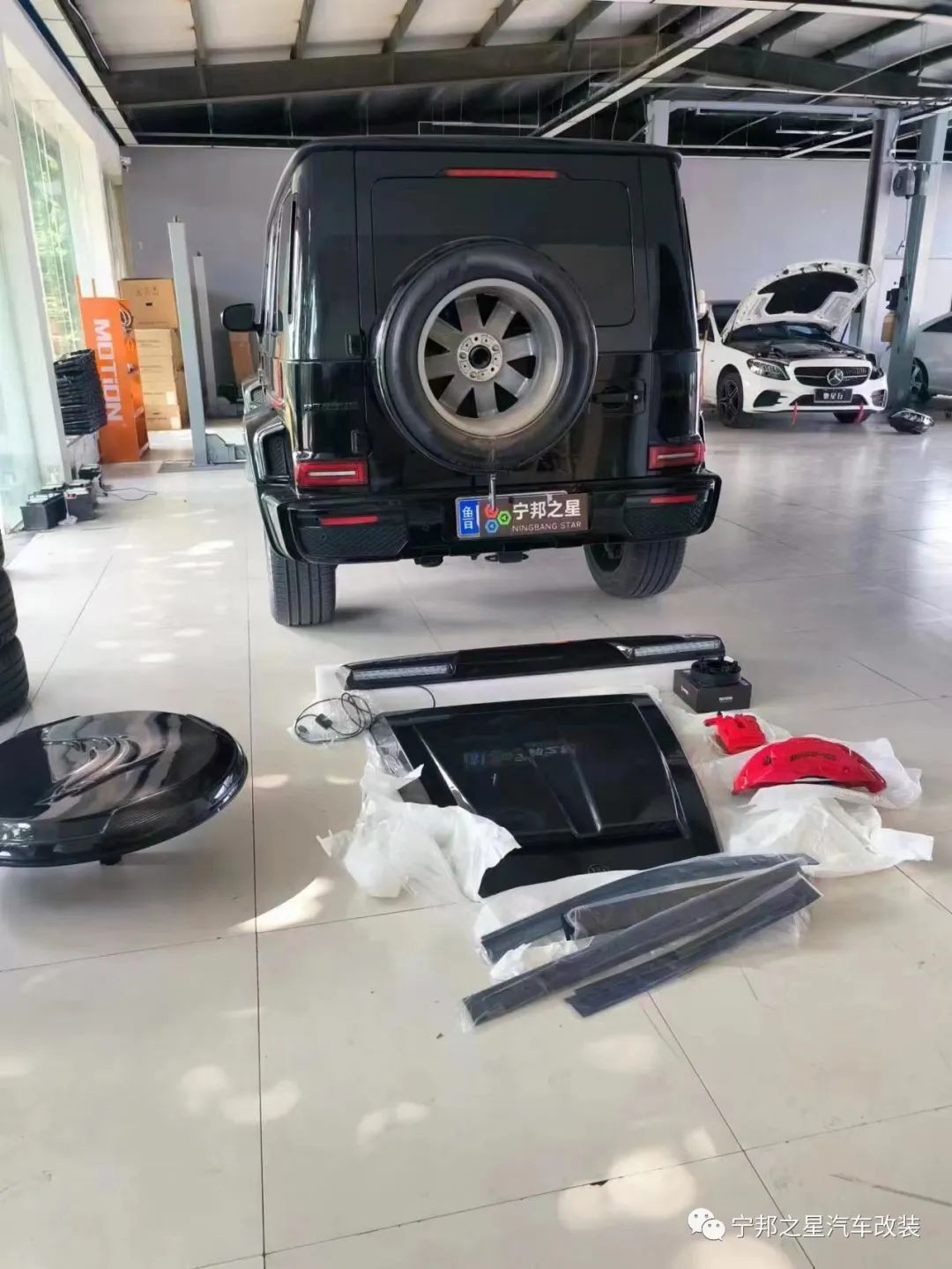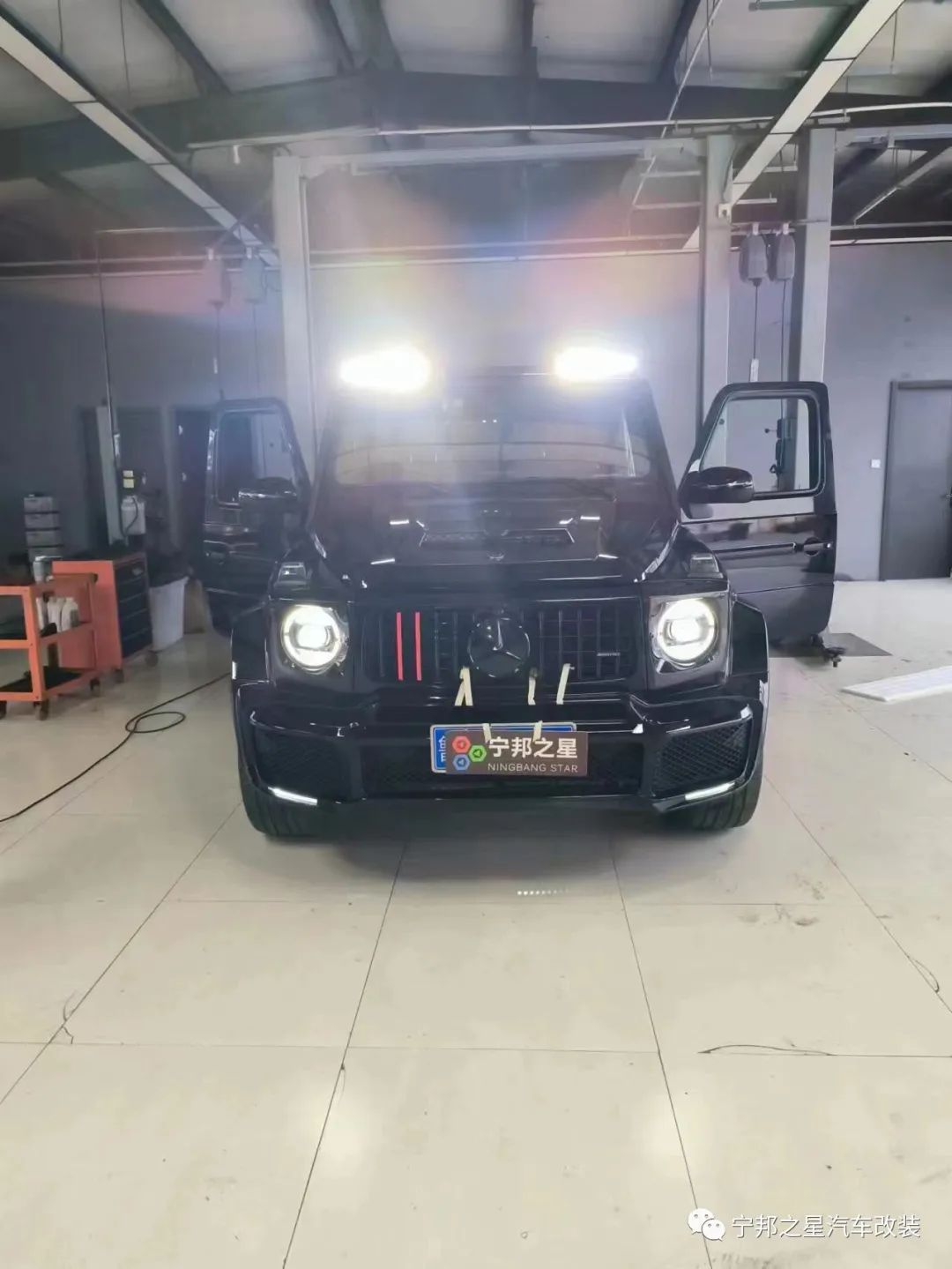 宁邦之星大g加工厂||山东枣庄奔驰g500升级巴博斯机盖,顶灯,前十后一刹车,车身腰线,