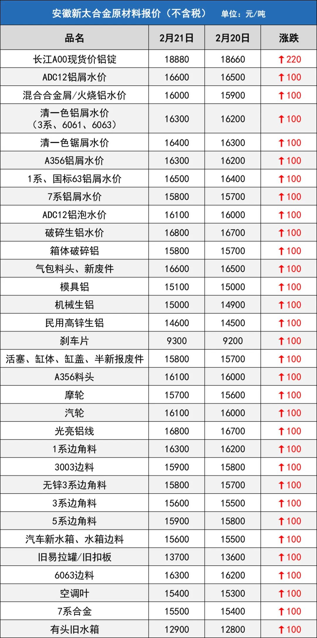 安徽新太合金有限公司2月21日最新报价
