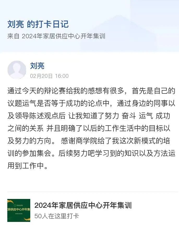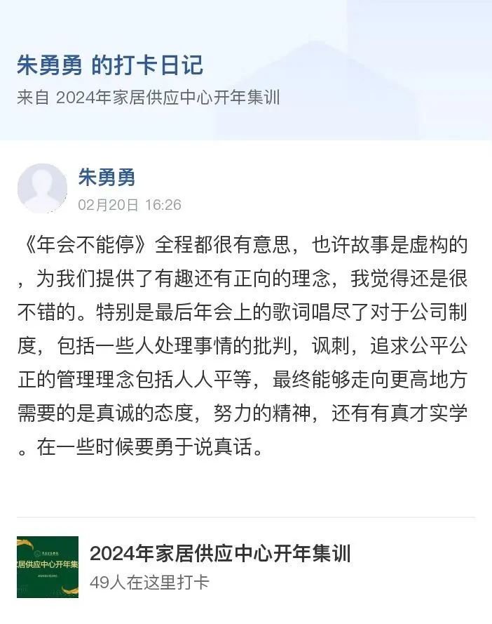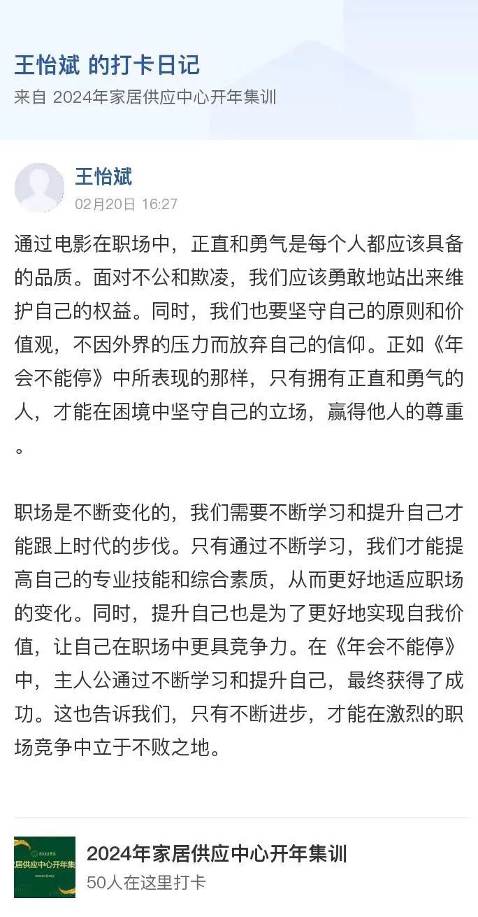 24年是机遇与挑战并存的一年,兔宝宝将会始终贯彻“学习力就是战斗力”这一方针,将学习融入工作的方方面面,不断提升自身专业能力,以应对市场新的挑战。