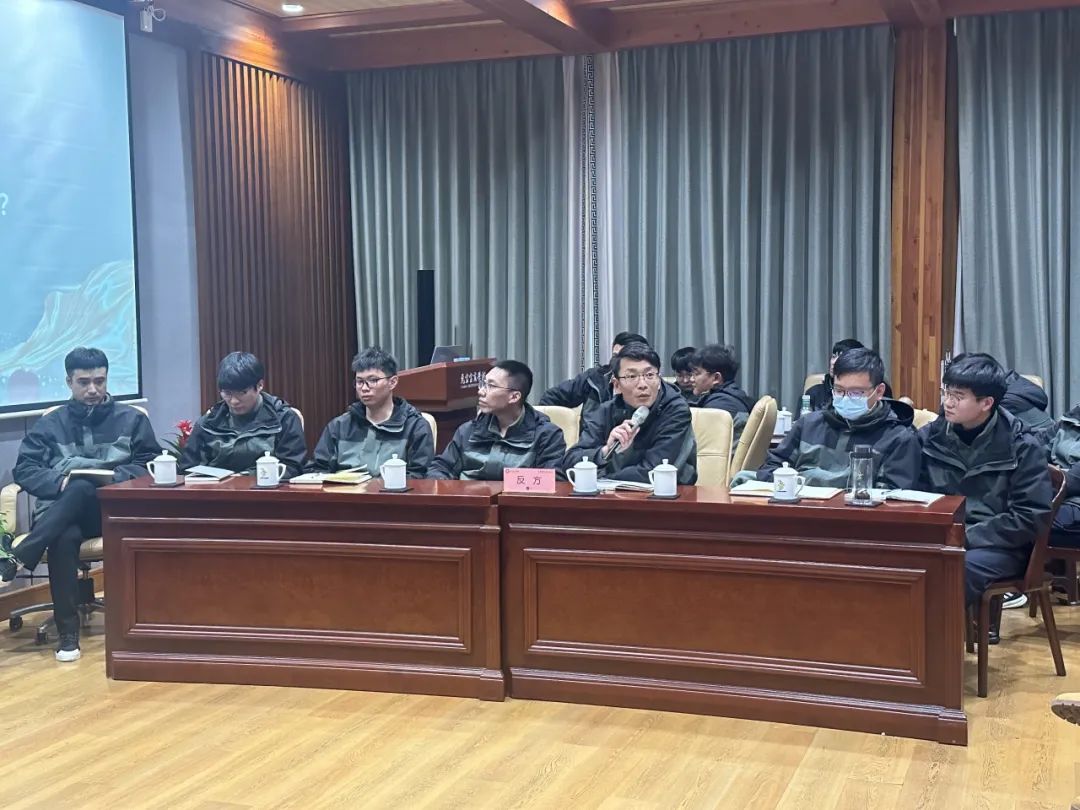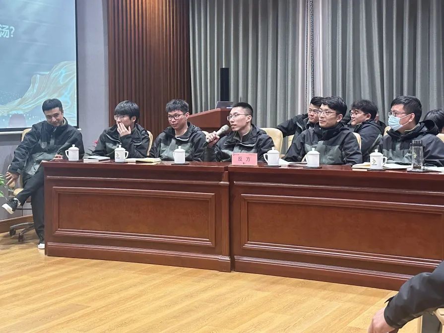 在辩论环节中,由6位组长分别带领各自组员展开自由辩论模式,集思广益,输出各自的精彩论点。