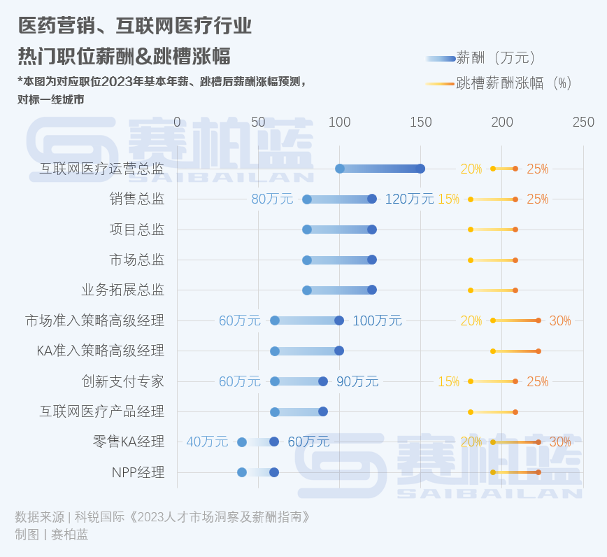 在医药营销领域,4个代表性职位——市场准入策略高级经理、KA准入策略高级经理、零售KA经理、NPP经理,均保持20%~30%的跳槽薪酬涨幅。