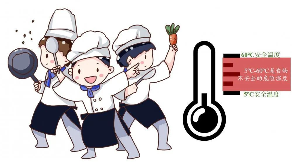 安全的温度是指不适于微生物生长、繁殖的温度。在5℃以下和60℃以上的条件下,绝大多数微生物可减缓生长繁殖的速度,或者停止生长。