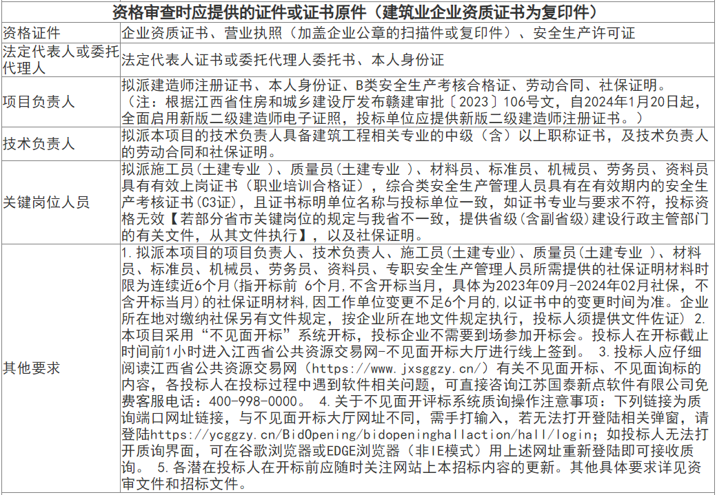 注:1、本表一式三份,招标人、招标代理机构、招投标监管机构各存一份,本表属”招投标情况书面报告“材料之一。 2、有标段划分的招标项目,当各标段对投标人的资格条件要求不一致时,招标人应在”投标(申请)人应具备的资格条件 “栏目中的”企业资质类别和等级、注册建造师类别和等级“栏目中将各标段的资格条件要求予以明确。