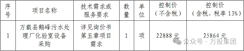 2.项目名称:万载县鹅峰污水处理厂化验室设备采购
