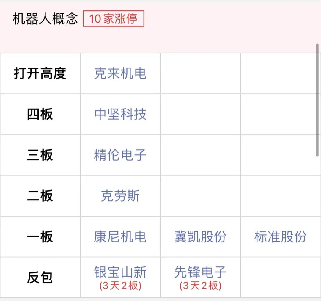 从新质生产力来看,板块的连板梯队还是比较完善的,从首板到4板都有小弟坐镇,尤其是克劳斯,2板开一字,这样就变相给克来机电来了一波强化,本身克来今天要分化,但后排顶一字,就达到强化龙头分歧的效果。