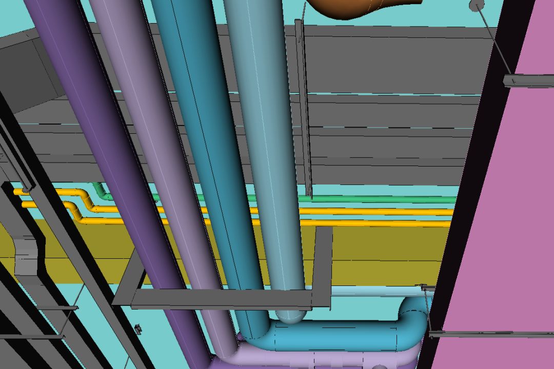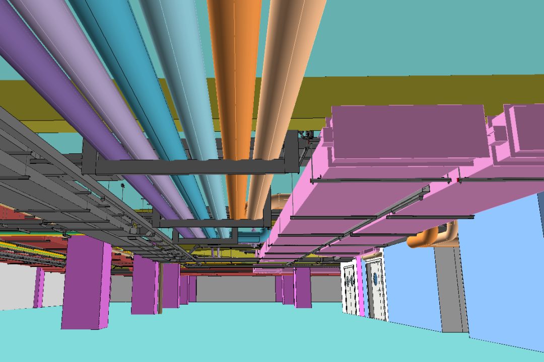 在不到2个月的时间里,完成了从地下一到三层车库区域到地上样板层区域共计10万平米的管道综合排布。同时,设计团队也通过设计比对发现了原设计中存在的诸多问题,尤其是建筑结构设计对机电系统的不合理,包括出户套管标高错误3111处,一次结构设计遗漏11处,梁深过大导致机电管线无法通行6处,部分管线通道路由不合理,影响今后的物业管理使用等。上述问题的发现和优化不仅提高了施工效能,还在经济效益上节约或减损超过300万元。