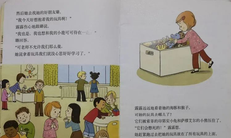 露露担心玩具们被挤在箱子里会受伤,她决定保护好这些可爱的玩具。