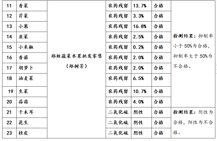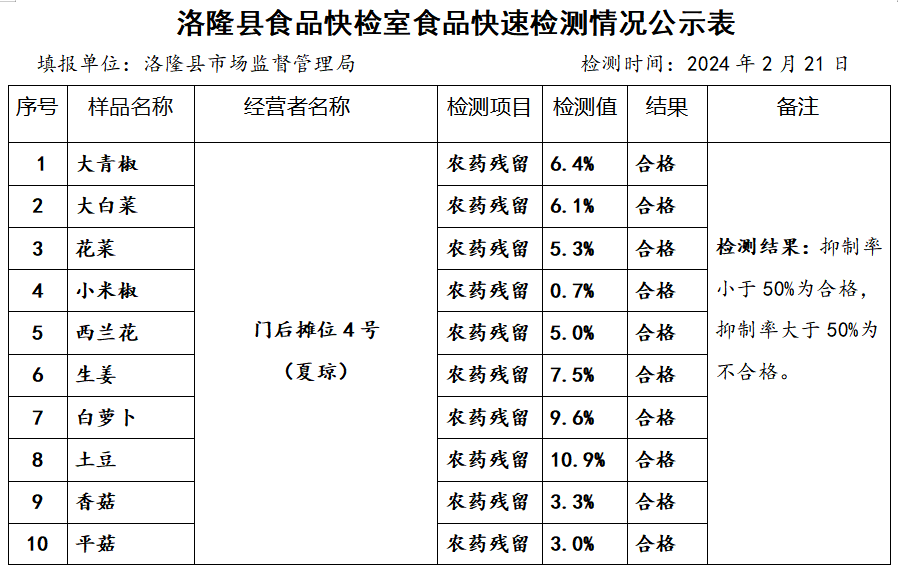 洛隆县食品快检室食品快速检测情况公示表