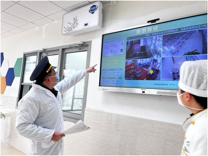 此外,区教育局部署开学安全检查工作,局领导和各处室带队抽查,四个教育指导中心进行全覆盖检查。为加强校园食品安全检查力度,围绕专项行动重点整治隐患,修订完善检查指标,突出食品安全“日管控”“周排查”“月调度”制度落实,充实病媒生物防治检查要点。在寒假食品安全隐患整改基础上,进行“回头看”,持续不断改进。同时,利用“互联网+明厨亮灶”系统开展智能巡检,目前全区中小学、幼儿园食堂已实现“互联网+明厨亮灶”项目全覆盖,管理部门通过该系统可以实时浏览、回看食品加工过程,利用人工智能自动识别抓拍食堂操作中的违规现象,将“明厨亮灶”图形信息和食堂基础信息进行整合,实现了“一图感知、一体联动”的模式,提升学校食品安全智慧化管理水平。