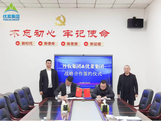 2月20日,优菜集团总经理李俊、总经理助理赵鹏、市场经理朱敖一行受邀到访丹农集团洽谈合作,并签署战略合作协议。丹农集团董事长敖翔、雅香居食品公司负责人严章奎、丹橙现代果业副总经理余波等领导出席接待。双方围绕食材配送、冻粑等农产品销售、丹棱县品牌打造、办公物资配送等事宜展开了深入探讨。