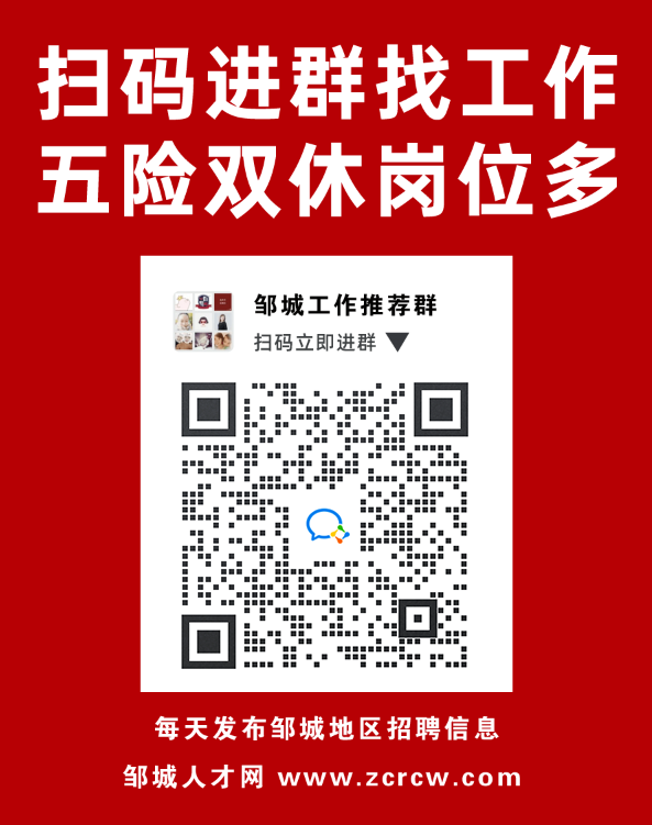 查看更多招聘关注公众号:邹城人才网