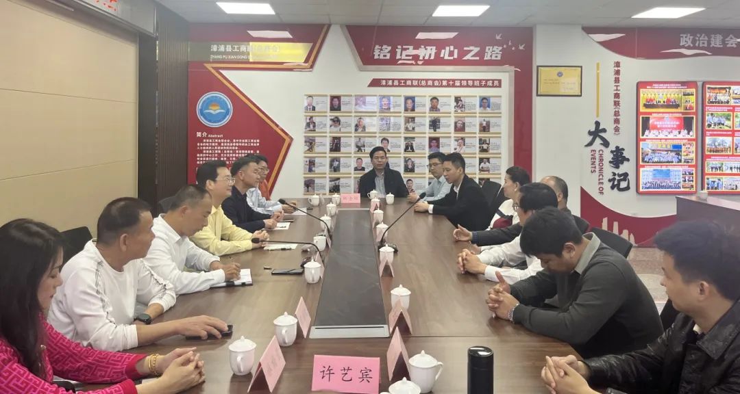 2月20日,北京市漳浦企业商会会长李武星带队回乡至漳浦县工商联(总商会)交流座谈。漳浦县委统战部副部长、县工商联党组书记吕坤新,县工商联(总商会)主席(会长)陈坤辉,县工商联党组成员郑建华、吴龙颜以及轮值企业家等参加。