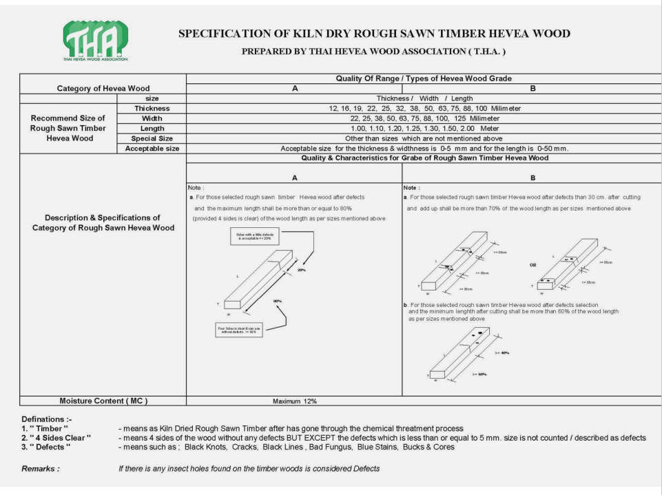 根据买家的需求,割胶后的橡胶树主干经锯切、分选、防霉处理、窑干后,可以提供多种尺寸的橡胶木锯材。