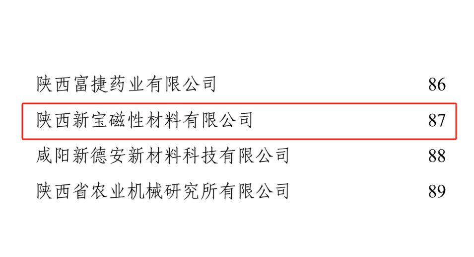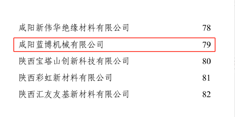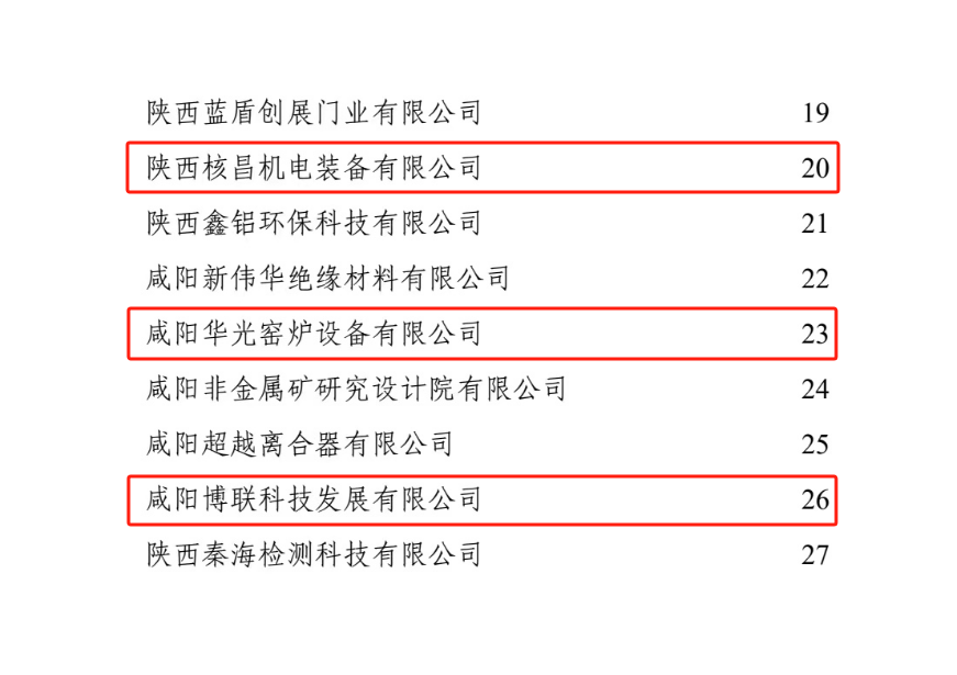 在2023年度咸阳市高新技术企业100强排行榜中,本商会常务理事单位、陕西天成航空材料有限公司(排名17),会员单位、咸阳华光窑炉设备有限公司(排名37),副会长单位、咸阳勃力模具制造有限公司(排名53),会员单位、陕西循天广播技术有限公司(排名69),会长单位、咸阳蓝博机械有限公司(排名79),会员单位、陕西新宝磁性材料有限公司(排名87),副会长单位、咸阳盛翼机械制造股份有限公司(排名97)等7户企业名列其中。