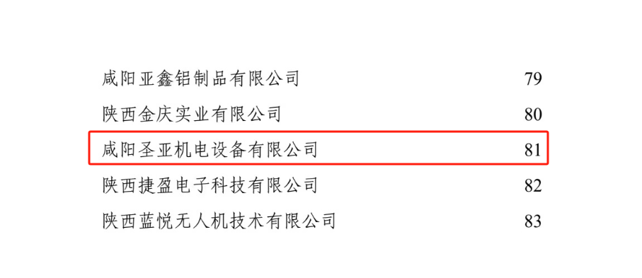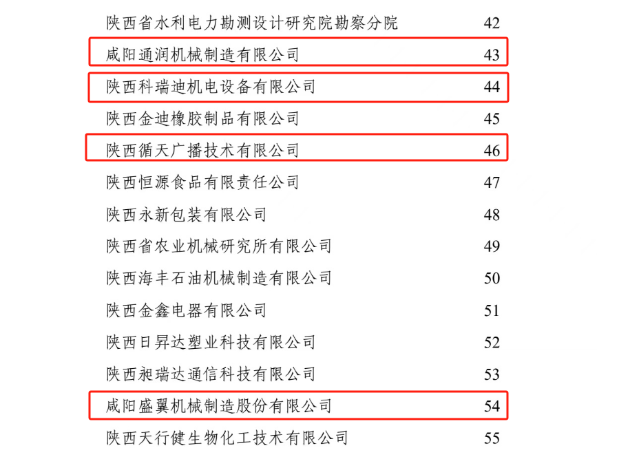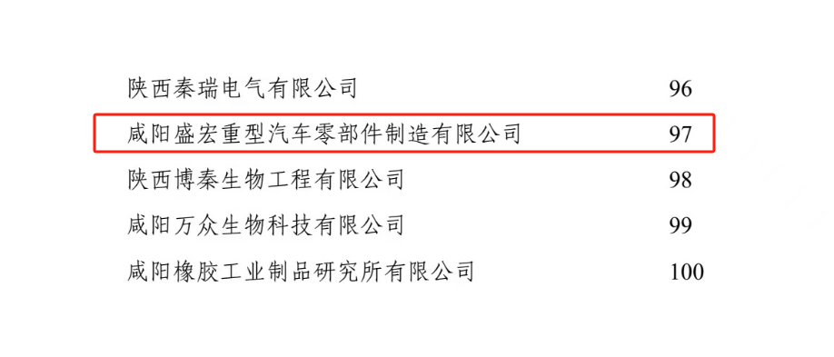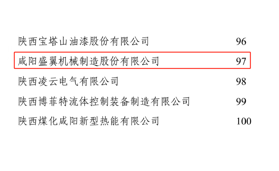 本商会副会长单位、咸阳勃力模具制造有限公司名列榜首,名誉会长单位、陕西正泰电容器有限公司(排名3),会长单位、咸阳蓝博机械有限公司(排名4),名誉会长单位、陕西核昌机电装备有限公司(排名20),会员单位、咸阳华光窑炉设备有限公司(排名23),咸阳博联科技发展有限公司(排名26),咸阳通润机械制造有限公司(排名43),理事单位、陕西科瑞迪机电设备有限公司(排名44),会员单位、陕西循天广播技术有限公司(排名46),副会长单位、咸阳盛翼机械制造股份有限公司(排名54),咸阳圣亚机电设备有限公司(排名81),监事长单位、咸阳盛宏重型汽车零部件制造有限公司(排名97)等12家企业榜上有名。