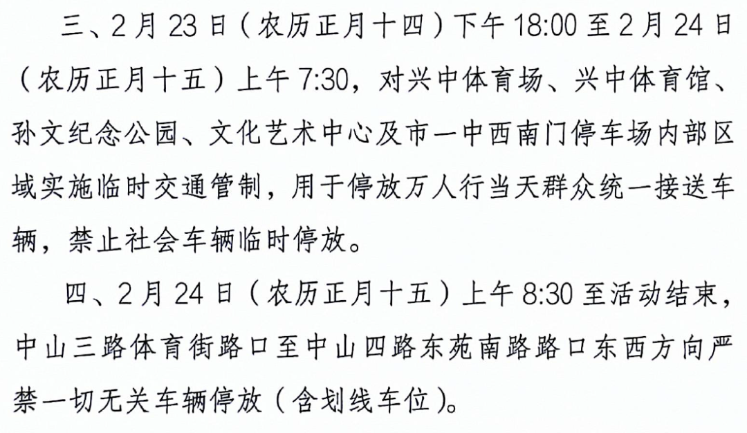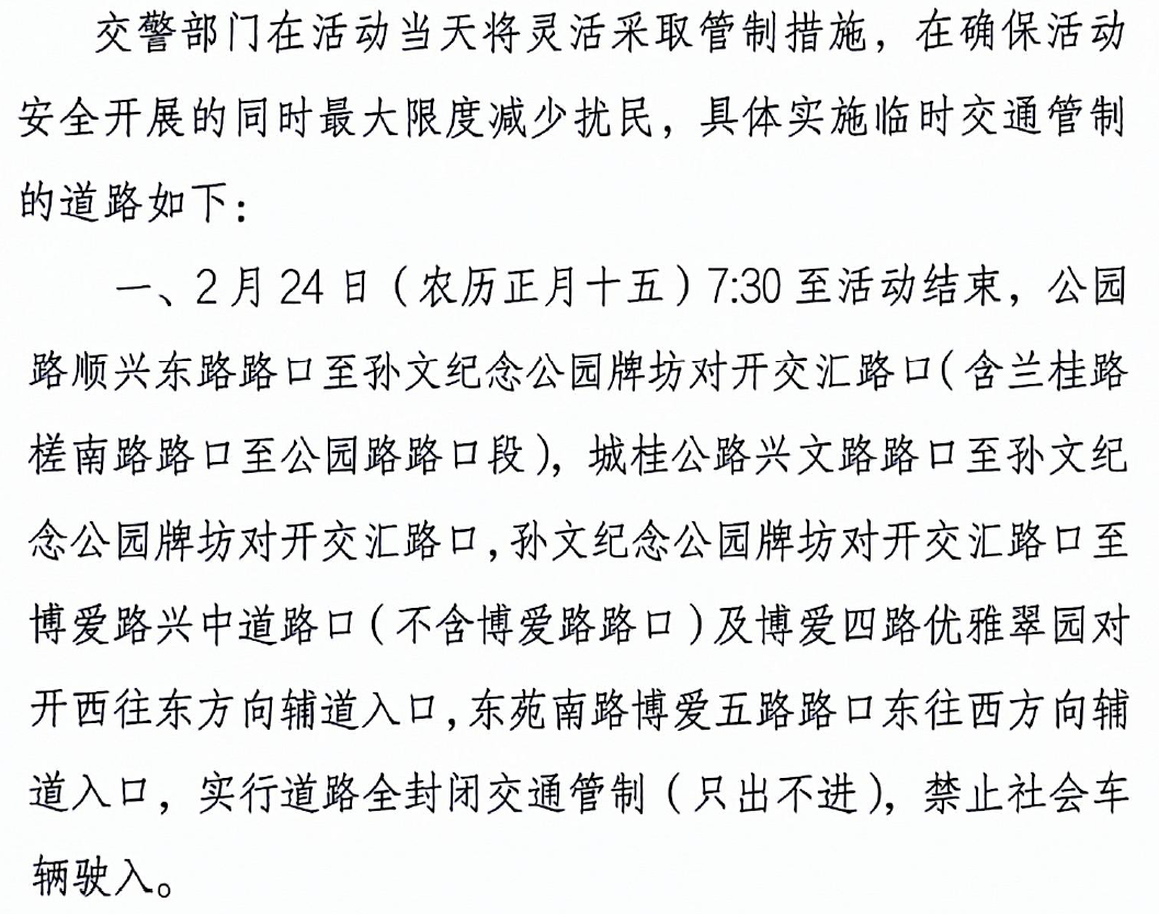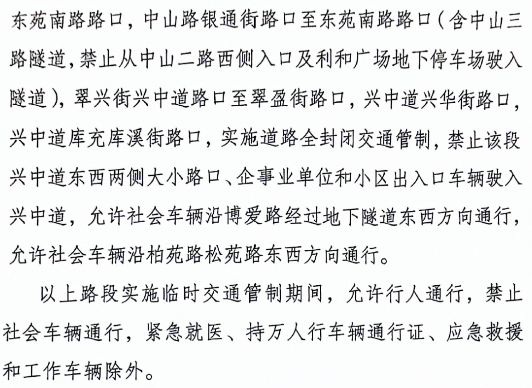 兴中道管控时间是9点半。公园路、文韵街,兴文路城桂路口到博爱路一段管控时间为7点半。