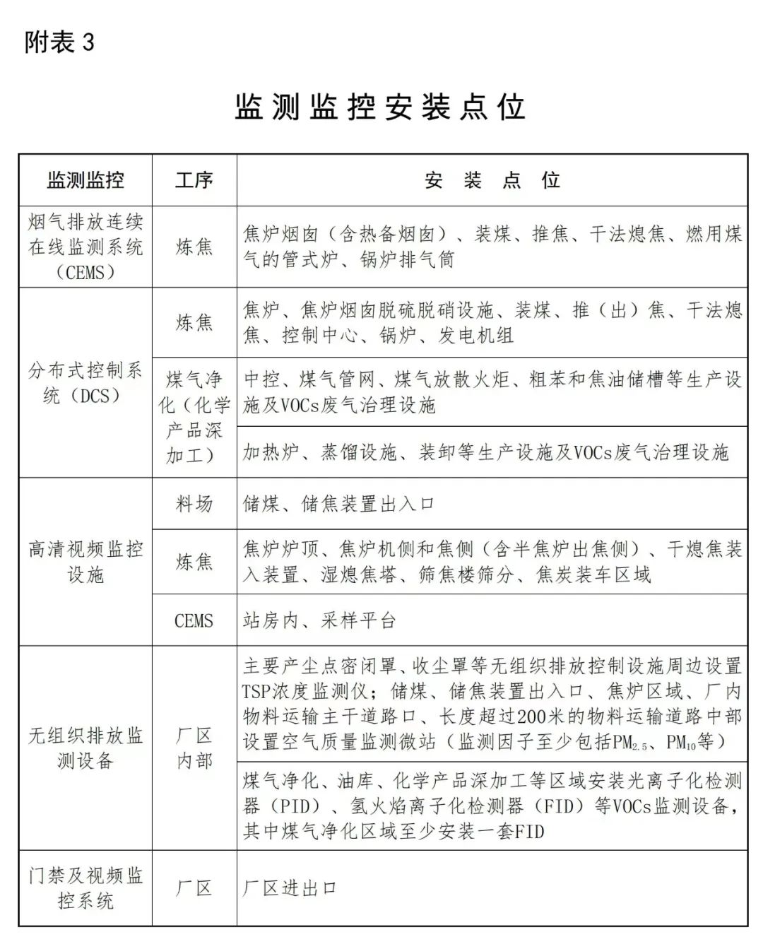 主要排放口和燃用煤气的管式炉安装自动监控设施,与生态环境部门联网并验收,焦炉烟囱(含热备烟囱)增加非甲烷总烃和氨排放自动监测;