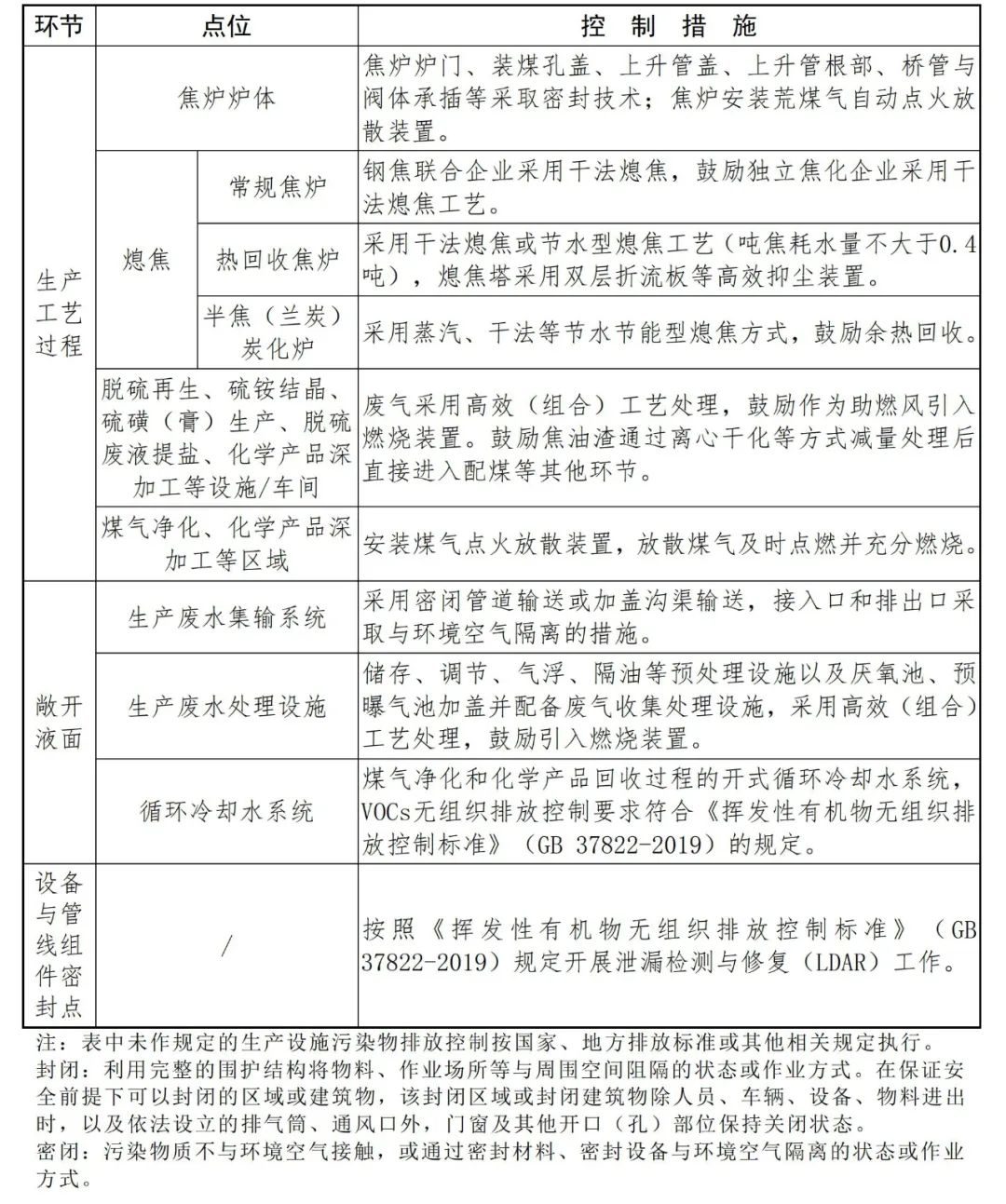 焦化企业超低排放是指所有生产环节(备煤、炼焦、熄焦、焦处理、煤气净化、化学产品深加工等生产环节,以及物料产品储存运输)的大气污染物有组织排放、无组织排放及运输过程达到超低排放要求。控制指标和措施要求如下。