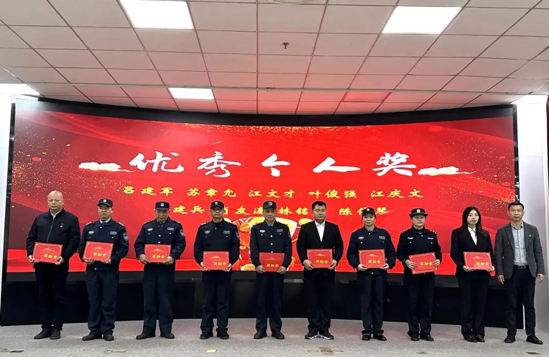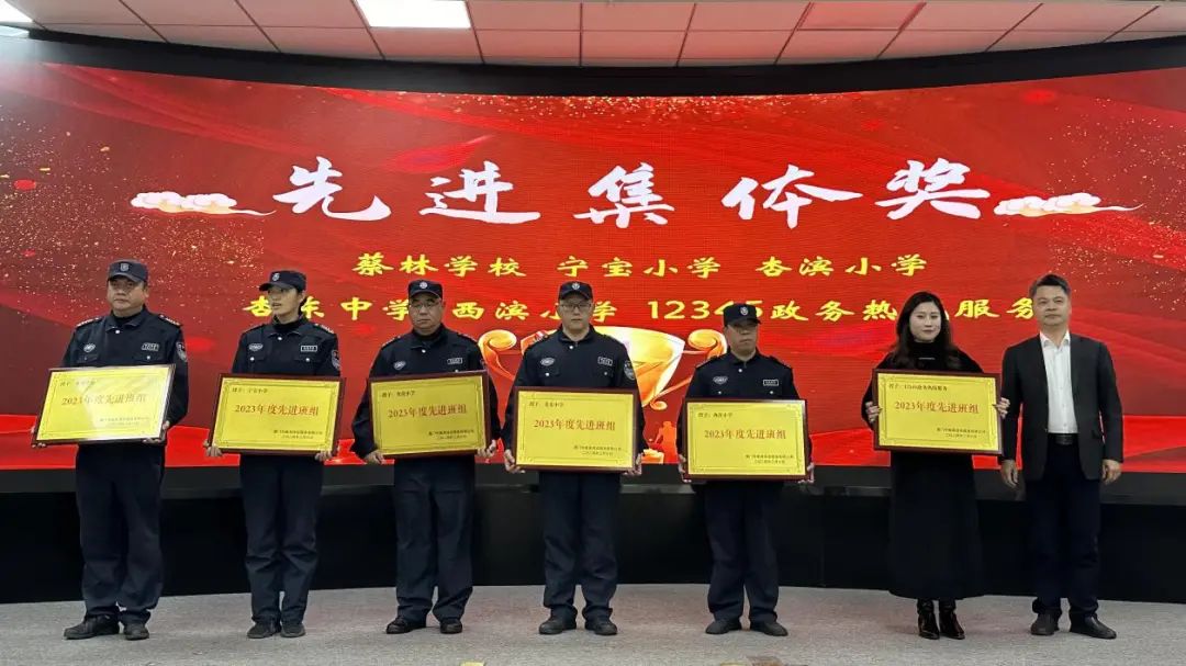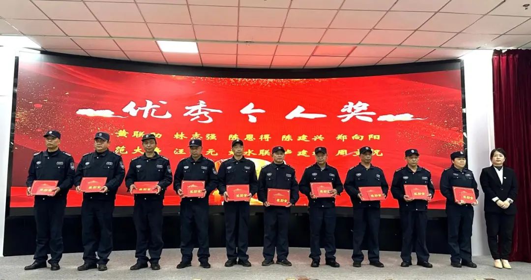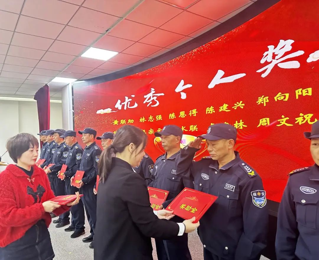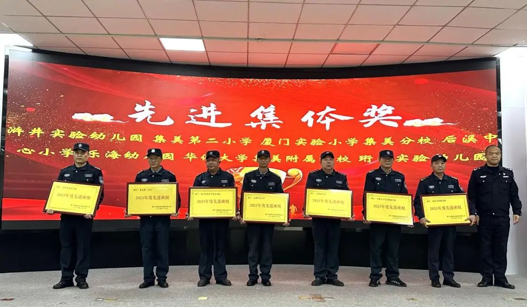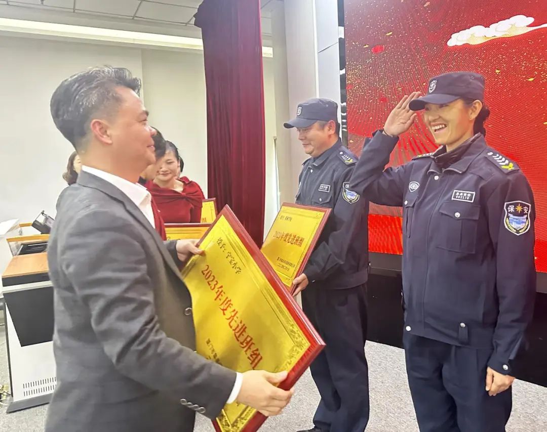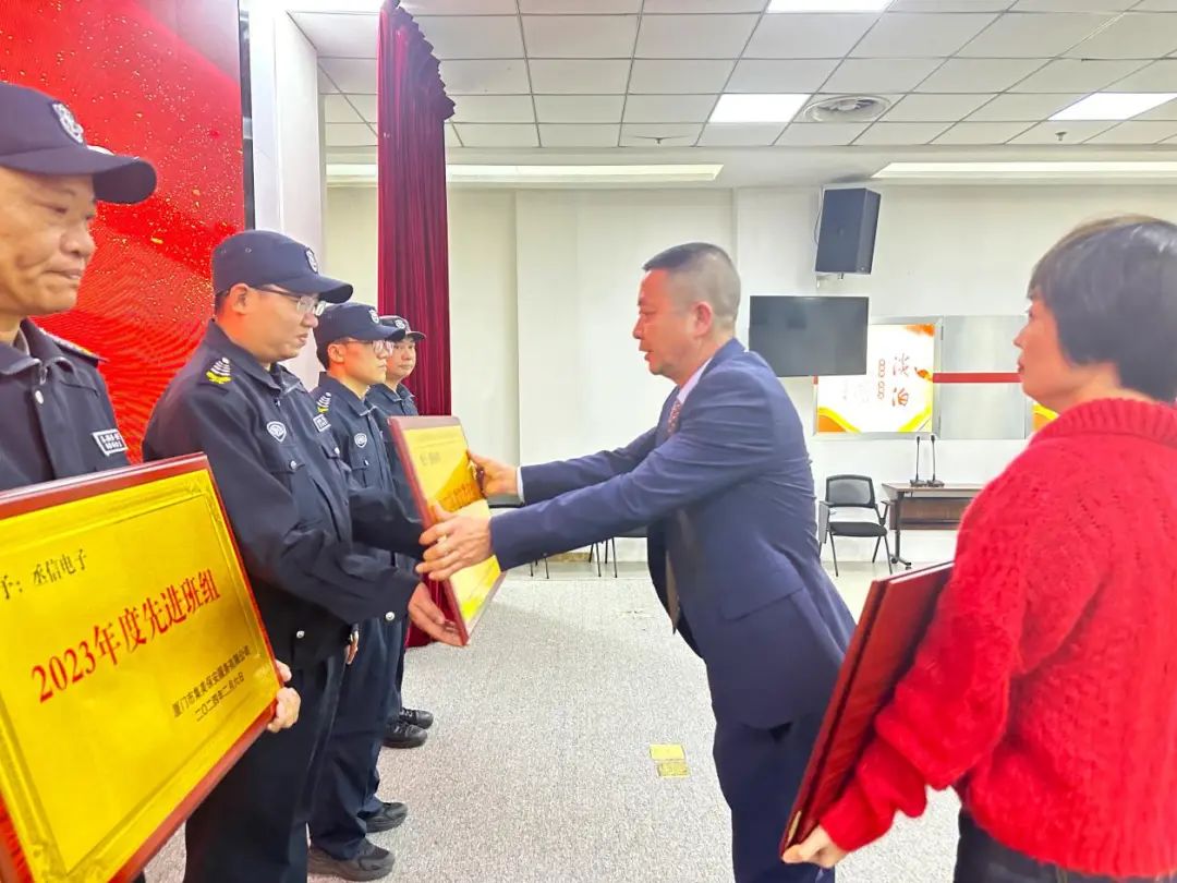 会上宣读了集美保安公司2023年度评优评先获奖名单,在热烈的掌声中,对获奖的优秀个人、先进集体颁发荣誉证书与牌匾。