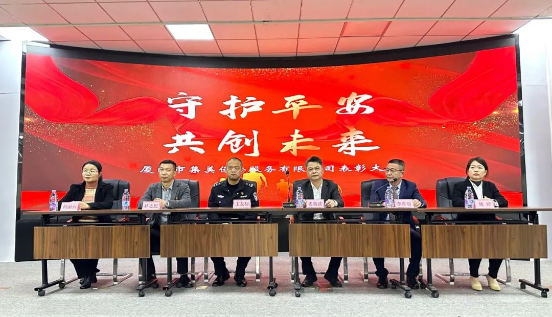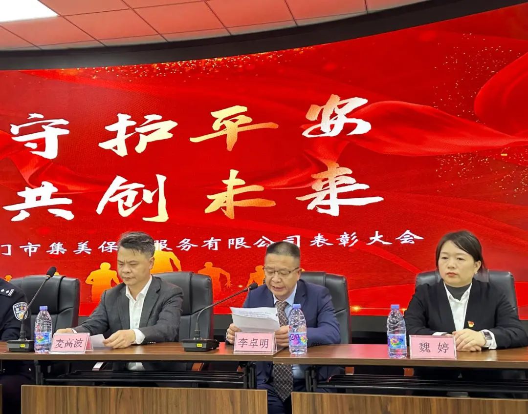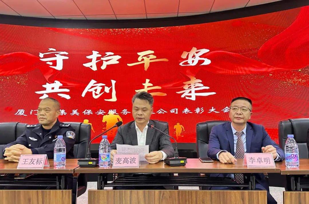 2月6日,厦门市集美保安服务有限公司“2023年度表彰大会”隆重召开,总结2023年工作,表彰先进集体及优秀个人。集美市政集团党委委员、副总经理麦高波,集美公安分局治安大队民警王友标,集美保安服务公司总经理李卓明及各部门负责人出席大会,与来自各派驻单位的安保人员代表齐聚一堂,共同总结过往,表彰优秀,展望未来。