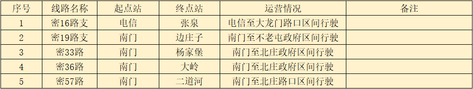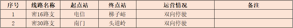 一、采取停驶措施3条(平原线路1条,山区线路2条)