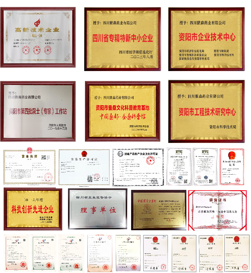 默森药业2006年于成都大学四川抗菌素工业研究所中试基地注册创立,并通过"ISO9001: 2015质量管理体系认证”。是一家专注蚕桑药食同源功能性食品和生物抗抑菌制剂研发、生产、加工、销售、服务为一体的多元化、综合型国家级高新技术企业。