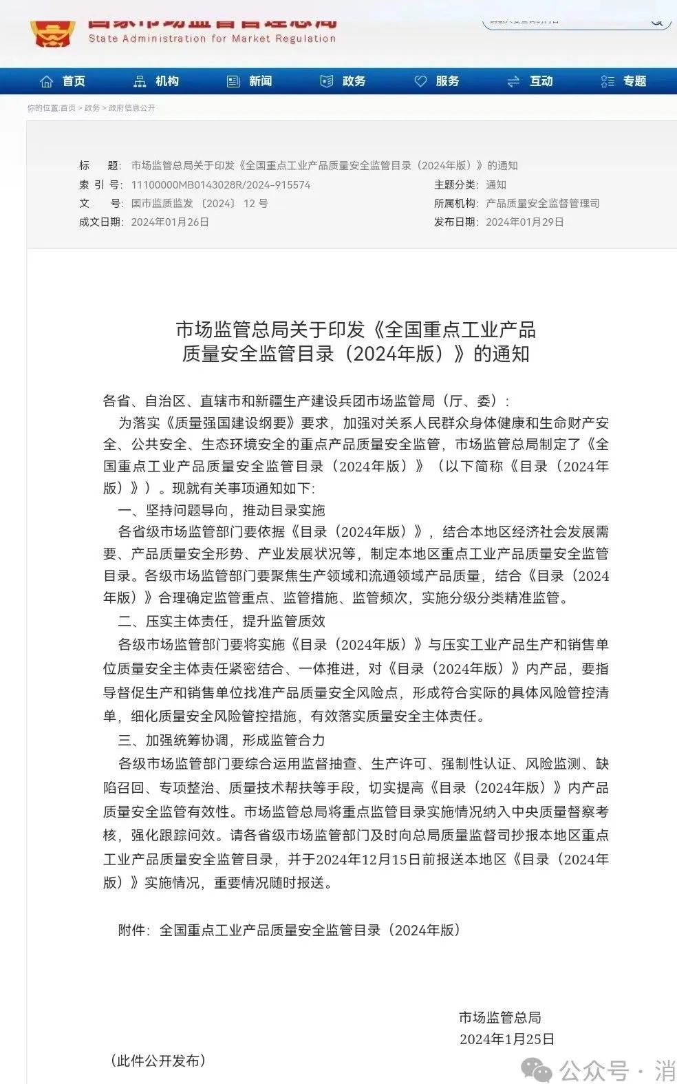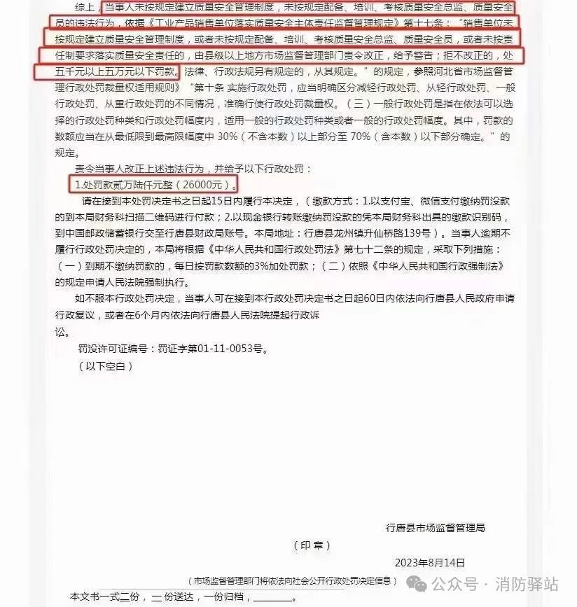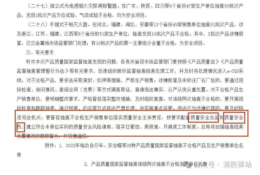 重大消息:致各消防产品生产企业,2023年5月5日国家市场监管总局发布了第75号、76号令,2024年1月25日再次发文,明确各企业需配置质量安全总监及质量安全员,落实产品质量及安全生产,现各省市区县已开始核查,请各企业重视并积极响应,以免影响企业后续的正常生产及销售,造成不必要的损失。