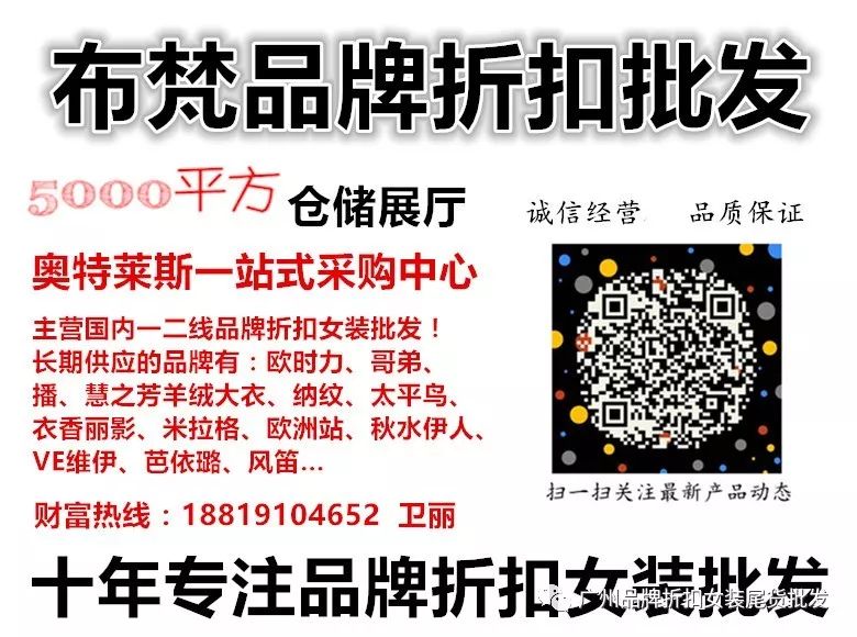 广州布梵.季歌服饰有限公司 坐落于广州市白云区石井尾货商圈,整个石井镇都是操作品牌折扣女装尾货批发的,广州(布梵)季歌服饰,在品牌服装尾货这个领域中,已经默默耕耘了差不多十年时间。操作过的品牌上千个!2015年公司经过全面升级整合之后,企业规模在全国屈指可数!实用面积达到5000平方(不包括仓库),女装展示厅有面积可达3000平方,办公面积达700多方,品牌长期经营上百个!是品牌折扣店的首选合作渠道之一!广州布梵品牌折扣公司,品牌折扣服装一站式采购中心!更多信息请加微信,微信朋友圈都有更新很多品牌信息讲解,有任何不明白的地方可以随时微我.微信号即联系电话电话号码,微信每天都有货品更新,也支持微信视频看货!
