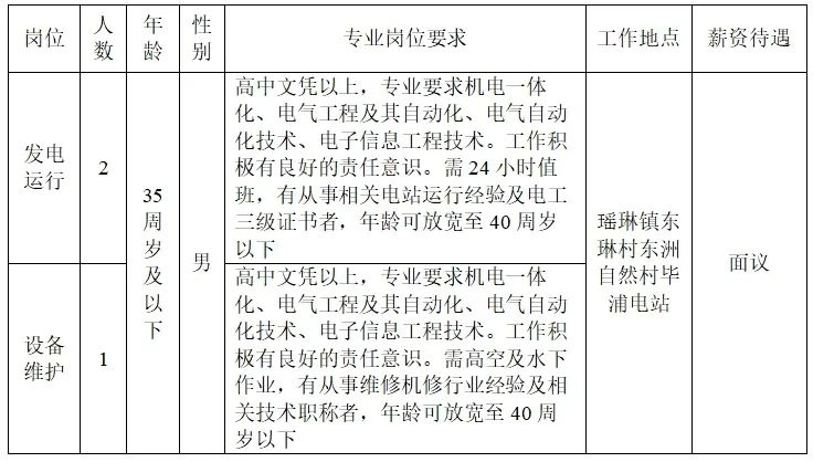 桐庐水电工程开发有限责任公司公开招聘工作人员需求表