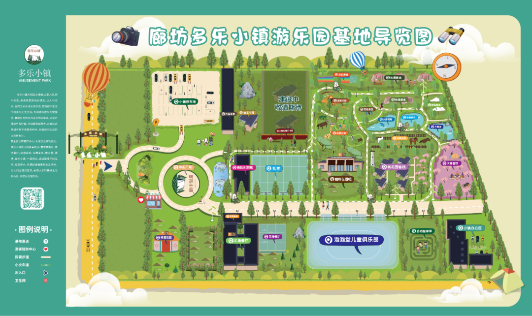 多乐小镇,分为室内区域及室外区域,大乐园,小建筑。以景入居,居中求景,是多乐小镇建筑景观的设计理念,让人与空间、自然之间形成互动交流,营造都市生活下的多元社交主场,为游客构建久在樊笼里、复得返自然的沉浸空间体验。营造舒适宜人的游玩环境,实现了人与空间、生态的可持续发展。