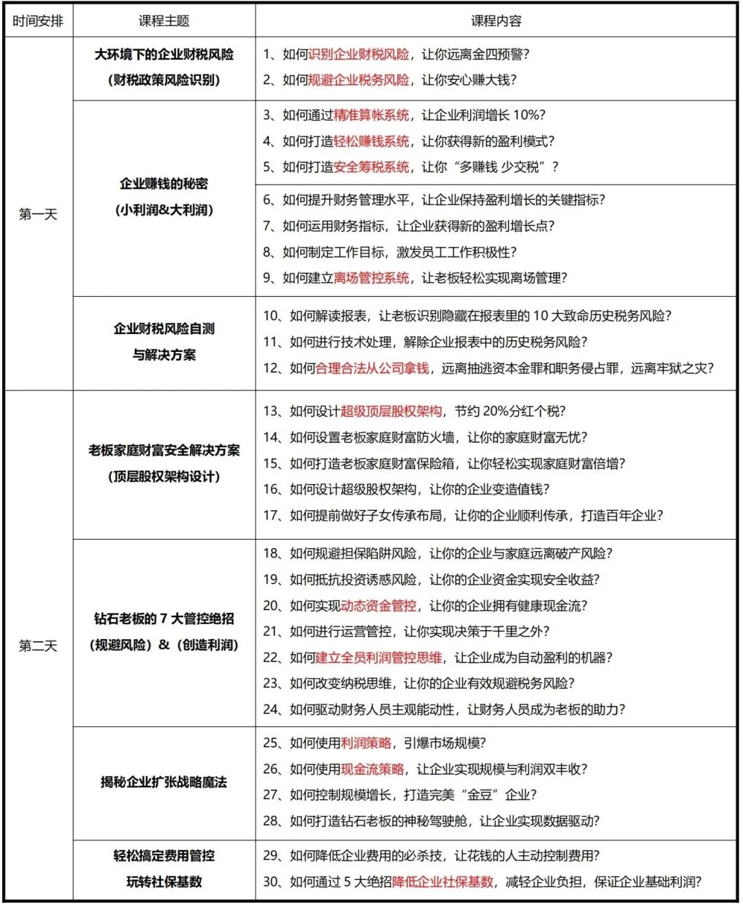 2024年2月29-3月1日长财咨询为您呈现企业老板财税风险管控的精彩课程!