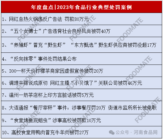 2023年食品行业十起典型处罚案例如下: