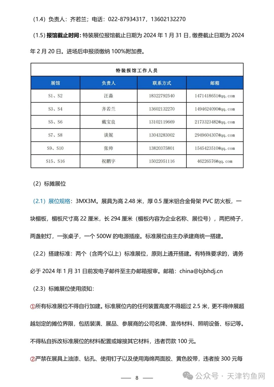 2、标摊展位:2024年02月28日8:30-17:30