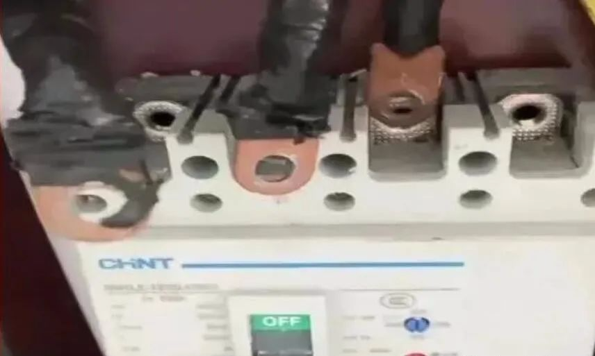 售后电工判定故障原因是进线总空开内部C相触点接触不良导致。然而,经断电后拆下总空开,却并未发现任何问题。这时,售后电工发现进线连接空开处铜鼻子包了很多层电工绝缘胶布,有部份胶布压在接线螺丝上。重新处理完接线铜鼻子后,故障消失。