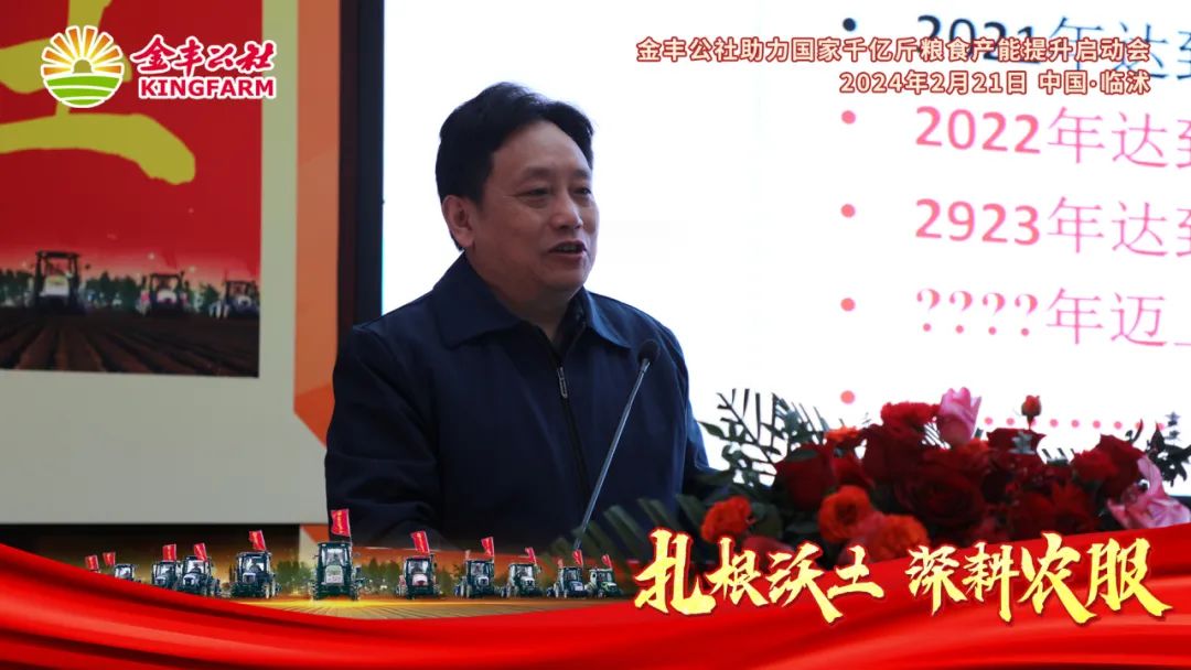 随着中央农村工作会议提出的新一轮千亿斤粮食产能提升行动,以及2024年中央一号文件的连续强调,粮食安全问题再次成为国家关注的焦点。在这样的大背景下,金丰公社——一家深耕农业服务领域的领军企业,于2月21日在山东临沭举办了一场别开生面的启动会。此次活动的核心目标,不仅是响应国家的号召,助力国家千亿斤粮食产能的提升,更是为了与各方聚能共同筑牢粮食安全的新篇章。
