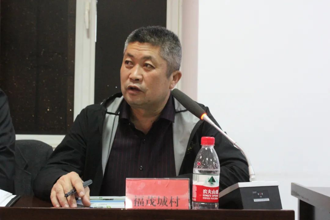 会议第一项,道劳村支部书记刘世荣围绕农香农牧业公司2020年土地合作经营工作经验进行典型发言。