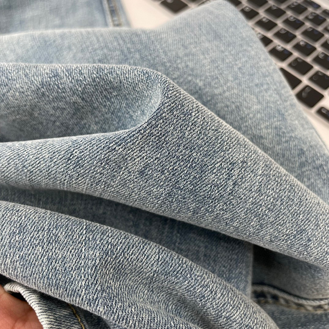 面料都是定制的98%环保土壤牛仔棉♻高温加弹工艺+石墨酵素水洗,收到货没有一点异味,并且整个布面轻柔紧实有支撑感并且不版腿,穿着舒适度非常非常高!