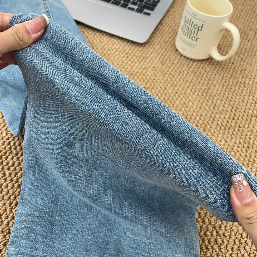 一镜到底看看细节!真正专业专一做牛仔的大厂货质感真的不一样高腰裤型,整个脚口都是净边收边的,没有一点偷工减料细节这个出厂价是真的香!